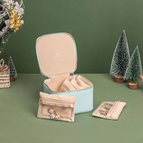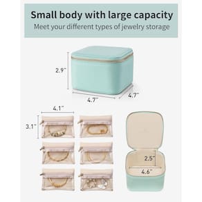 Vlando Caixa de joias de viagem em couro sintético de flor de lichia, incluindo 6 pequenos sacos de armazenamento de veludo, que podem ser facilmente levados para viagens ou viagens de negócios. Armazenamento para colares, anéis, brincos e pulseiras. - Caixa de armazenamento de joias de couro de flor de lichia, incluindo 6 sacos de armazenamento transparentes de veludo, pode ser transportada separadamente ou colocada dentro do armazenamento da caixa de joias, para evitar que a oxidação das joias afete o uso - Alça de hardware de cardamomo personalizada, zíper para facilitar o armazenamento e puxar; forro de veludo para evitar arranhões nas joias; material de couro de grão de lichia, durável - Bolsa de armazenamento de joias, caixa pequena e grande capacidade, caixa de joias simples e generosa é muito adequada para mulheres que gostam de viajar, muitas vezes viajam para usar; diga adeus para sair quando as joias estiverem atadas, não encontre problemas - 6 sacos de armazenamento portáteis podem armazenar grampos de cabelo, colares, pulseiras, pulseiras, anéis, brincos e outros acessórios; 2 maneiras de usar, você pode colocar a bolsa de veludo na caixa para guardar, você também pode tirar a bolsa da caixa direta para armazenar joias grandes, adequadas para suas várias necessidades - A bolsa de joias da moda é perfeita como presente para esposa, filha, amiga, aniversário, Dia dos Namorados, aniversário, presente de formatura, organizador de joias texturizado e prático permite que os usuários reduzam o problema de substituição frequente de bolsas de armazenamento