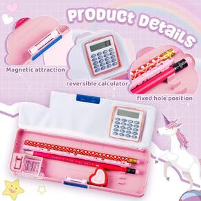 1 x estojo de lápis Unicorn com calculadora e apontador de lápis