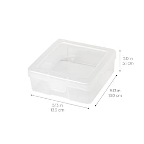 IRIS Caixa de lápis de plástico EUA artesanato hobby arte material escolar recipiente organizador de armazenamento com tampa de trava, pacote com 10, para canetas de contas, fitas, fita wahi, - SOLUÇÕES DE ORGANIZAÇÃO - IRIS USA Pacote com 10 unidades de plástico transparente Hobby Modular Craft Supply Art Satchel Organizador de caixa de armazenamento com fecho de pressão ajuda a organizar artigos de papelaria, documentos, canetas e giz de cera, pequena ferramenta, cartolina, pastas de relevo e muito mais - Transparente – Chega de procurar suas coisas de artesanato, arte e hobby. O design transparente do recipiente organizador de bolsa de plástico IRIS USA com trava permite que você encontre todos os itens armazenados instantaneamente de qualquer ângulo - Trava rápida – a trava segura fecha com segurança a caixa de suprimentos de artesanato, separando o interior e o exterior. Qualquer arte, hobby, utensílios de cozinha, ferramentas são seguros contra poeira e líquidos e perfeitamente organizados - Dicas profissionais – adicione adesivos na lateral ou na tampa para etiquetar seus pertences para identificar e reconhecer facilmente seus pertences; seja um super organizador - DESIGN PERFEITO - 13 cm C x 13 cm L x 5 cm A (dimensão interna: 12 cm C x 11 cm L x 4,5 cm A) O design é super compacto. Os tamanhos pequeno, médio e grande expandirão sua capacidade de organização