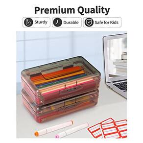 Descrição do produto Você ainda está procurando caixas plásticas para ajudá-lo a organizar os itens? O conjunto de 6 caixas de lápis de cor da Sooez está à altura da tarefa. Abundante e grande o suficiente para guardar muitos materiais domésticos, escolares, de arte, de escritório e muito mais. 2 folhas de etiquetas permitem uma organização mais eficiente e uma identificação mais fácil. A tampa hermética mantém o conteúdo seguro e o design empilhável ajuda a manter a organização e economizar espaço. Informações sobre o produto: O pacote inclui: 6 caixas de lápis de cor Material: polipropileno durável Cor: disponível em azul marinho, amarelo, rosa, cinza escuro, roxo, turquesa Dimensão: 8,2 (L) × 4,6 (L) × 2,3 (A) polegadas Características do produto: Ampla aplicação: uma excelente opção para quem precisa segurar lápis de cor, canetas, borrachas, réguas, giz de cera, bastões de cola e outros papelaria. Ideal como caixa de materiais de arte, estojo de brinquedos pequeno para crianças, caixa de armazenamento de artesanato, recipiente de material de escritório, kit de primeiros socorros e muito mais. Ótimo para atender às necessidades pretendidas. Robusto e durável: construído com polipropileno de qualidade arquivística, garante que seja super resistente, forte e durável de usar. Equo com dobradiças duplas, não é fácil de quebrar ou rachar, mas resiste bem ao armazenamento a longo prazo. A construção em plástico é impermeável, à prova de poeira e fácil de limpar. Grande capacidade: mede 8,2 × 4,6 × 2,3 polegadas. Fácil de guardar 100 canetas ou lápis. Tão grande e profundo que você pode armazenar uma grande variedade de suprimentos, incluindo lápis de cor, tesouras, bastões de cola, giz de cera, divisória, limas de caracol, Lego, quebra-cabeças, materiais de arte, bordados, material de escritório, material de primeiros socorros e es. Fecho seguro com tampa de pressão: permite que a caixa seja fechada hermeticamente para proteger o conteúdo e ser aberta facilmente. Proteja bem os itens armazenados sem precisar se preocupar com a possibilidade de eles caírem durante o manuseio ou transporte brusco. Empilhabilidade: Construído com uma fenda convexa na parte superior e uma fenda côncava na parte inferior, que permite todas as