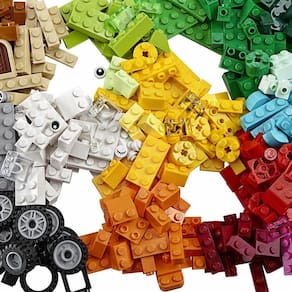 Com a Caixa Média de Peças Criativas - Lego Clássico a imaginação e criatividade não tem fim! Feito para os construtores de todas as idades, esta coleção de blocos de montar Lego Clássico em 35 cores diferentes, vai encorajar as brincadeiras de construção e estimular a imaginação. Janelas, olhos, e montes de rodas aumentam a diversão e oferecem possibilidades infinitas de construção criativa e jogo com veículos. Este conjunto de Peças Criativas Lego vem numa caixa de arrumação de plástico super prática e inclui ideias para começar a montar. DETALHES ESPECIAIS: - Inclui janelas, olhos, 18 pneus e jantes, placa de base verde e muito mais para aumentar a diversão e oferecem infinitas possibilidades de construção criativa e reprodução de veículos - Placa de base verde mede mais de 7,5cm de comprimento e 15cm de largura INFORMAÇÕES: • Produto: Caixa de Lego Clássico - Peças Criativas - 484 Peças - Lego • Composição / Material: Plástico • Marca: LEGO • Idade Recomendada: para crianças maiores de 4 anos de idade. Benefícios: • Os blocos de montar Peças Criativas - Lego estimulam a criança a desenvolver a imaginação, criatividade, raciocínio lógico, percepção visual e a coordenação motora das mãos e dedos. Despertam a atenção e curiosidade! Aviso importante: • As imagens são meramente ilustrativas. As cores e estampas dos produtos podem ter variações. As informações são de responsabilidade do fabricante ou fornecedor.