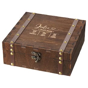 Texto gravado na tampa externa. Decorado com couro sintético marrom escuro e rebite, vintage e inovador, uma trava resistente para segurança. Nossa caixa lindamente gravada é uma maneira doce de compartilhar seu amor.