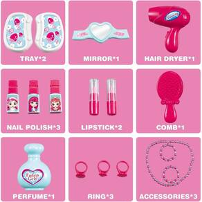 “Tipo de item: caixa de maquiagem Zalati, conjunto de brinquedos, 18 peças, bolsa de viagem, conjunto de joias, para crianças, RPG, divertido; material: algodão, poliéster, couro sintético; sexo: mulher, senhora; estilo: moderno, casual, sexy; estação: primavera, verão, outono e inverno.”