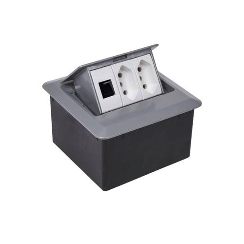 Caixa De Mesa Pratik 128 3 Blocos 2EL/1RJ QTMOV Opção para mesas ou móveis onde é necessário múltiplos pontos de energia e/ou telecomunicações. Característica do produto: - Excelente custo benefício. - Fácil instalação. - Contém invólucro de proteção. - Acabamento em pintura líquida. - 2 Tomadas e 1 Bloco para RJ Fabricação: Termoplástico. Cores: Preto, Cinza e Branco. Dimensional externo: L17 x A17 x C9 (CM)