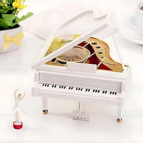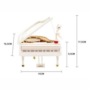 Ao abrir a tampa do piano, a experiência se torna ainda mais especial: a melodia Fr Elise, de Beethoven, começa a tocar enquanto a bailarina gira suavemente, criando uma atmosfera única de delicadeza e poesia. Compacta, leve e durável, esta caixa é ideal tanto para uso pessoal quanto como um presente memorável, unindo organização, beleza e emoção em um único produto.