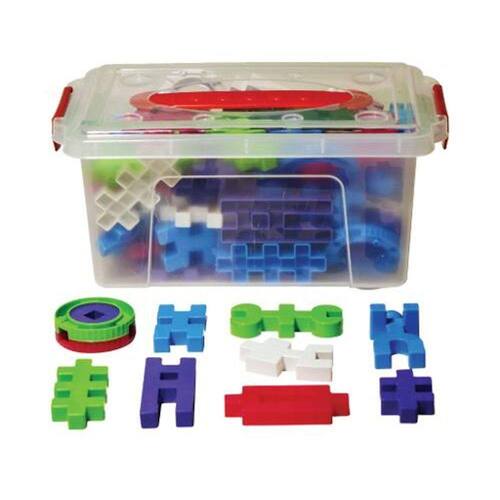 Conjunto confeccionado em plástico, contendo 100 peças com diversos tipos de encaixe. Acondicionado em uma maleta medindo 27x17x12cm