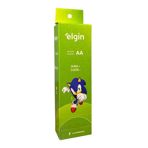 As pilhas alcalinas Elgin do mascote Sonic são ideais para brinquedos, controle remotos, lanternas e outros aparelhos que requerem descargas de energia rápidas e fortes. Elas foram aprovadas em todos os quesitos e têm ótima relação custo/benefício, você economiza e ainda conta com pilhas de alta qualidade. Entre 11 marcas de pilhas do mercado avaliadas em testes do INMETRO, as pilhas Elgin apresentaram um resultado excelente na relação custo por hora útil. Além disso, elas são testadas periodicamente por laboratórios credenciados pelo INMETRO, para garantir a qualidade e conformidade com a resolução Conama 401.