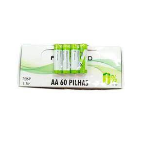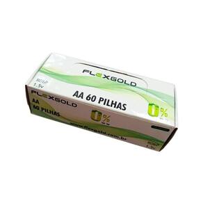 Caixa de Pilhas AA Zinco 60 unidades Flex Fx- Aaz60 A Pilha AA Zinco c/ 60 Unidades - Flex FX-AAZ60 é uma opção econômica e eficiente para alimentar diversos dispositivos eletrônicos de uso diário. Características Principais:• Modelo: FX-AAZ60• Tipo: Pilha Zinco-Carbono• Tamanho: AA (LR6)• Tensão Nominal: 1,5V• Quantidade na Embalagem: 4 unidades Descrição:As pilhas Flex FX-AAZ60 são produzidas com materiais de qualidade, garantindo eficiência e durabilidade em aplicações cotidianas. São ideais para dispositivos de baixo consumo energético. Aplicações Recomendadas:• Controles remotos• Calculadoras• Relógios de parede• Brinquedos eletrônicos• Agendas eletrônicas Observações:Não recarregável; destine as pilhas usadas conforme as orientações ambientais locais.Armazenar em local seco e à temperatura ambiente para preservar a vida útil.