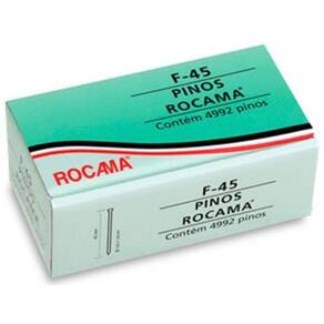 Caixa De Pinos C/Cabeça F-45 - Rocama - Os pinos da linha F são ideais para fixação de forros, rodapés, montagem de móveis, estofados, projetos de marcenaria, instalação de pisos de madeira e tudo mais que sua imaginação permitir Equipamentos necessários: - Pinador compatível com pinos do tipo F. Características Gerais do Produto: : 3 meses Ean: 7892145100454