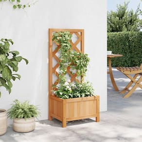 Plantador de madeira maciça de abeto vidaXL com treliça - Floreira externa retangular marrom para jardim, pátio e terraço