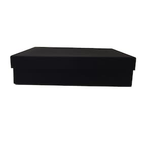 Caixa de Presente Cartonada Papelão Rígido Tamanho 20x30x8 1 - Caixa de presente em papelão rigido, Tamanho 20x30x8 largura x comprimento x altura Ideal para presentes ou guardar objetos. Revestimentos: - Interno parte de dentro da caixa : Papel couchê branco fosco - Externo: Papel colorplus Preto ESPECIFICAÇÕES TÉCNICAS - Altura da tampa 3 cm - Cor : Preta - Material: papelão rígido, 2 mm de espessura - Revestimento externo: papel colorplus - Revestimento interno e fundo: papel couchê branco - Fino acabamento - Produto artesanal, feito à mão - Desde 2001 - de qualidade Ean: 7907233203303 Marca: Não Informado