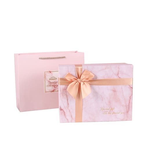 Material: papel especial Tamanho: 21* 21* 9,5 cm Peso: 277 g Design elegante em mármore rosa: esta caixa de presente apresenta um padrão sofisticado de mármore rosa com uma fita de cetim brilhante e uma mensagem de “presente especial”, tornando-a ideal para presentes de luxo. Perfeita para casamentos e ocasiões especiais: projetada para casamentos, presentes de dama de honra ou embalagens de chá, esta caixa adiciona um toque de elegância a qualquer evento. Material de papel premium: feito de papel especial de alta qualidade, a construção robusta garante que seus presentes sejam embalados com segurança e bem apresentados. Sacola de presente correspondente incluída: vem com uma sacola de presente coordenada, facilitando a apresentação de seu presente em um conjunto de embalagem elegante e pronto para presente. Tamanho generoso: com dimensões de 21x21x9,5 cm e peso de 277g, esta caixa é ideal para guardar pequenas guloseimas, acessórios ou lembranças.