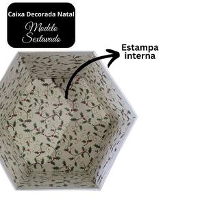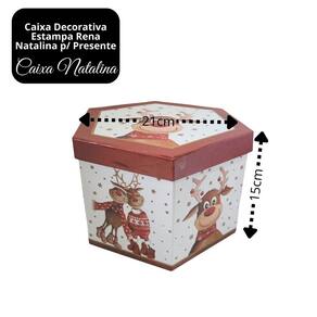 Caixa Decorativa Natalina Multiuso – Estampa Renas Love Sextavada 21cm