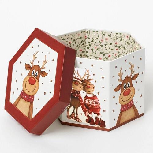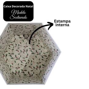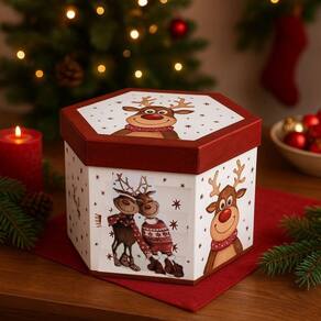 Caixa Decorativa Natalina Multiuso Estampa Renas Love Sextavada 21cm