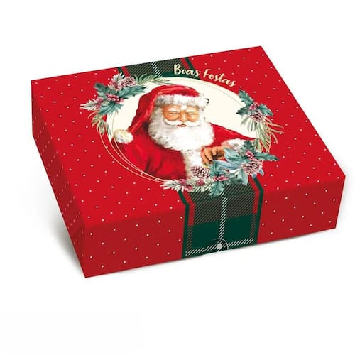 Mais sobre o Produto: Ideal para presentes de Natal de diversos tamanhos. Base e tampa que se encaixam perfeitamente. Possibilita a personalização com laços, fitas e outros enfeites.