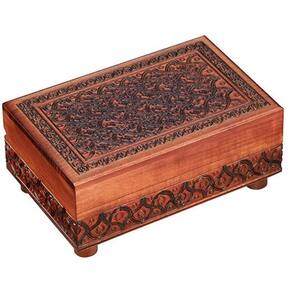 - Material: Madeira. Tamanho - 7,25" x 4,75" x 3" - 18 cm x 12 cm x 8 cm. Tamanho interior - 6,5 “x 4" x 2" - 16 cm x 10 cm x 5 cm