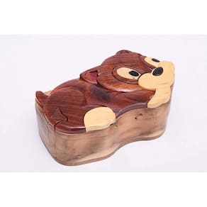 Esta bela peça de arte em madeira de intarsia foi esculpida à mão a partir de uma peça sólida de madeira e, em seguida, o interior foi esculpido para criar um espaço para guardar pequenas coisas como joias, bugigangas ou o que você achar melhor. A tampa interna da caixa do quebra-cabeça também foi esculpida à mão. A parte mais bonita é a capa, que é feita de muitas peças diferentes de madeira esculpida à mão com diferentes espessuras e cores, dando à peça sua linda aparência tridimensional. Para abrir a caixa do quebra-cabeça, primeiro remova a chave (encontrada perto da borda) e, em seguida, deslize a tampa para fora. Em seguida, abra a tampa para revelar o compartimento interno. Como cada caixa de quebra-cabeça é esculpida à mão individualmente, cada caixa é única. Por esse motivo, a peça real que você recebe pode ser um pouco diferente da que você vê na foto. No entanto, todos ficam lindos e temos certeza de que você ficará muito feliz com a qualidade e a beleza da peça final que receberá. Esta caixa de quebra-cabeça intarsia é uma ótima adição para colecionadores de caixas de quebra-cabeça, uma boa adição à decoração da sua casa ou como um presente exclusivo para alguém especial.