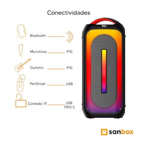 -Conexões (Entradas): BT/ USB / TF /AUX / 2xP10