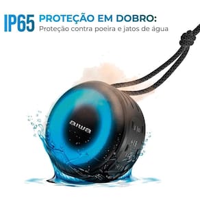 Especificações técnicas Características Principais: Altura: 9,7 cm Largura: 5,4 cm Comprimento/Profundidade: 9,5 cm Peso: 400 g Alimentação: Bateria de lítio recarregável Bluetooth: Versão 5.3 Certificado Anatel: 18367-22-05236 Cor: Preto Marca: AIWA Potência de Saída: 10 W RMS