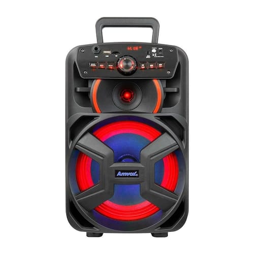 Características Principais do Produto: Marca: Amvox Modelo: ACA221 Gigante Cor: Preta Certificado Anatel: 08935-19-12655 Potência (RMS): 220W Alimentação: Bivolt Altura: 37 cm Largura: 20,50 cm Comprimento: 25,50 cm Peso: 2,00 Kg