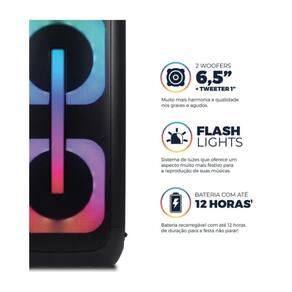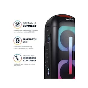 A Caixa de Som Amplificada Britânia BCX6801 é ideal para quem busca potência, praticidade e qualidade sonora para festas, reuniões e momentos de lazer. Com 650W de potência, entrega som forte e bem equilibrado, com graves marcantes e ótima definição.A conectividade Bluetooth permite pareamento rápido e estável com smartphones, tablets e outros dispositivos, garantindo mais liberdade para reproduzir suas músicas sem o uso de cabos. Também conta com entrada USB e entrada auxiliar P2, ampliando as opções de reprodução.Para deixar o ambiente ainda mais animado, a caixa possui efeitos de luz integrados, que criam uma experiência visual envolvente e ajudam a transformar qualquer espaço em clima de festa. Seu design moderno e robusto combina com diferentes ambientes.Pensando na versatilidade, a Britânia BCX6801 dispõe de entrada para microfone, ideal para karaokê, apresentações ou anúncios, além de rádio FM com memorização de estações e painel de controle simples e intuitivo, facilitando o uso no dia a dia.Com funcionamento bivolt, a Caixa de Som Amplificada Britânia 650W Bluetooth BCX6801 é a escolha certa para quem quer som potente, fácil de usar e com excelente custo-benefício. Marca: Não Informado