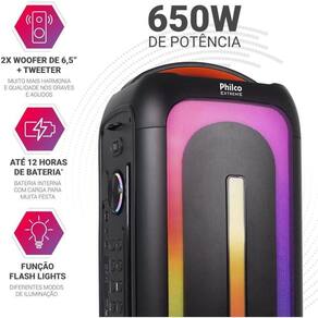 Caixa de Som Amplificada Philco PCX6701 650W Bluetooth com LED e Controle Remoto