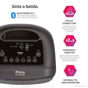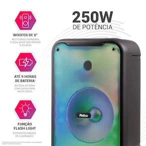 Caixa de Som Amplificada Philco PCX3800 | FM/BLUET/AUX/USB, 250W, Bateria Até 9 Horas, Preto