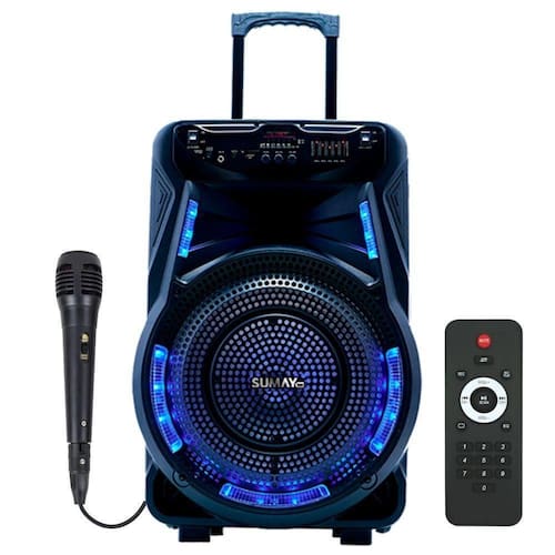 Caixa de Som Amplificada Sumay STYLE 12 800BT 400w 110V/220V A Caixa de Som Amplificada Sumay STYLE 12 800BT 400w 110V/220V como o próprio nome diz, é estilosa e muito bonita, com Leds azuis em torno do falante e tweeter você vai chamar a atenção e animar a sua festa. Com 400w RMS de muita potência a Style 12 chama muita a atenção pelos excelentes GRAVES proporcionados pelo seu auto falante de 12 polegadas, sendo perfeita para músicas com Funk, HIP-HOP que exigem muitos dos graves da caixa. Caso você não queira graves ao extremo, a caixa possui um equalizador de 05 bandas para você deixa o som mais FLAT equilibrado caso desejar. Se quer utilizar sua caixa para palestras ou para evangelização, é a opção perfeita, pois acompanha microfone com fio, ajuste e ECHO e bem leve para você leva-la a qualquer lugar, além de 05 horas de duração média. Ouça sua playlist através da entrada Auxiliar, cartão de memória, Bluetooth ou conexão USB. Possui entrada P10 microfone , conexão TWS e rádio FM. Especificações técnicas: - RMS: 400w - Auto Falante: 01 x Woofer de 12 polegadas cada - Equalizador de 05 bandas - Ajuste de ECHO - Luz em LED nos Falantes - Alça retrátil para transporte e rodinhas - Função Bluetooth 5.0 - Bivolt 110/220v - Bateria de 05 horas de duração média - Função TWS - Função Troca de pasta - Frequência: 40 - 20KHz - Controle Remoto - Radio: FM - Medidas: 36cm Largura x 30cm Profund x 55cm Altura - Peso: 7,0kg Recursos de áudio: - Leitura de arquivos por pasta: Sim - Função gravar REC : Sim - Formatos de áudio: MP3 - Microfone prioridade: Sim Conexões: - 01 x Entrada Auxiliar P2 - 01 x Entrada microfone ou Guitarra P10 - 01 x Entrada USB Reprodução MP3 - 01 x Entrada Cartão SD Reprodução MP3 Itens Inclusos: - 01 Caixa de Som - 01 Microfone com fio - 01 Controle Remoto - 01 Carregador - Manual do usuário