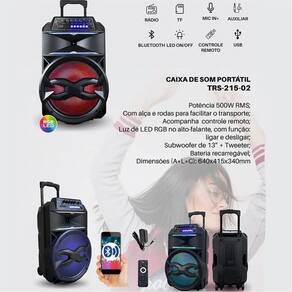 Produto: Caixa de Som Amplificada Tronos TRS-215-02 - 500W - Woofer 15 - LED RGB - com Bluetooth, Rádio FM, USB, MICRO-SD