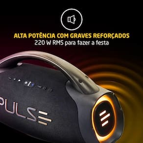 A Caixa de Som Amplificadora Pulse X Boombox SP626 220W é a solução perfeita para quem busca potência, qualidade de som e design moderno em um único equipamento. Ideal para festas, eventos e uso diário, ela combina tecnologia avançada com praticidade, entregando graves intensos e som cristalino em qualquer ambiente.