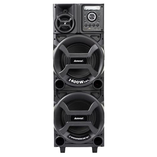 CAIXA DE SOM AMPLIFICADA AMVOX TITAN ACA 1402 1400W RMS LED BLUETOOTH A potência e qualidade de som que você merece em uma Caixa de Som robusta e imponente! A Titan ACA 1402 Amvox, possui 2 woofers de 10 polegadas e 1 tweeter de 6 polegadas que produzem incríveis 1400W RMS de potência, com amplificador digital, possibilidade de conexão Bluetooth, entrada USB e até 2 entradas P10 para plugar microfones e instrumentos musicais.