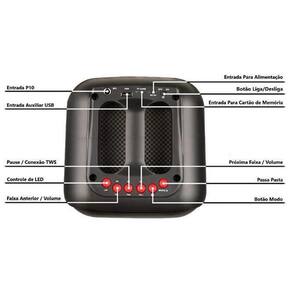Potência, qualidade e praticidade A aca 150 pop é a caixa amplificada compacta, leve e prática para levar sua música onde quiser. Com woofer de 4, 150w rms, bluetooth, equalizador, leds vibrantes, rádio fm, bateria de até 4h e funções powerx tws , oferece som de qualidade para qualquer ocasião. Som e portabilidade com estilo Leveza, diversão e som vibrante para transformar qualquer ambiente em uma experiência única e inesquecível. Monte o seu próprio paredão Conecte diferentes caixas de som amvox usando a função power x, sem precisar de cabos ou outros conectores. Ouça as suas músicas preferidas simultaneamente e ligadas a um mesmo smartphone. Especificações técnicas Marca: amvox Modelo: aca150 Cor: preto Versão bluetooth: 5.0 Consumo: 16 w Impedância: 2.5ohm Resposta de frequência: 50hz-20khz Alcance bluetooth: 10 mt Potência de áudio: 150 w Voltagem: bivolt Entrada para microfone: 1 Bluetooth: sim Entrada auxiliar: sim Sd card: sim Usb: sim Equalizador: sim Função tws: sim Função power x: sim Alça para transporte: sim Iluminação led: sim Alça para transporte: sim Tempo de carregamento: 2 horas Dimensões do produto axlxp : 17.5 x 17.5 x 22.0 cm Dimensões da embalagem axlxp : 24.0 x 24.0 x 28.0 cm Peso líquido: 1.0 kg Peso bruto: 4.0 kg : 12 meses Homologação Anatel: 215262310354