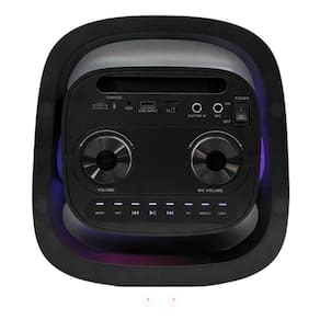 Potência total: 160w rms alto-falantes: 2 woofers de 6,5 + 2 tweeters de 20w bluetooth 5.3 com alcance de até 15m bateria recarregável de 4000mah iluminação led integrada função tws para som estéreo com duas caixas entradas: usb, tf, aux, microfone com fio e guitarra funções adicionais: rádio fm e gravação