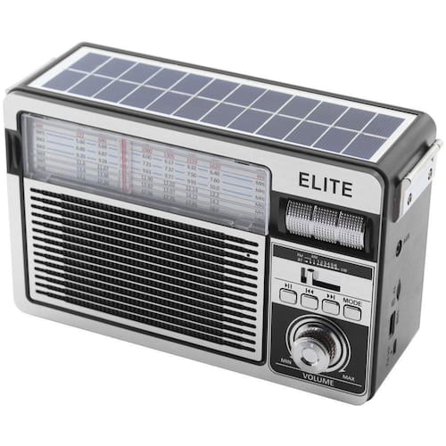 Este rádio suporta: - Rádio Fm/Am - Entrada Aux - Entrada USB - Slot tf card - Suporta cartão e pendrive de até 32gb - Conexão bluetooth - Painel Solar - Luz de led