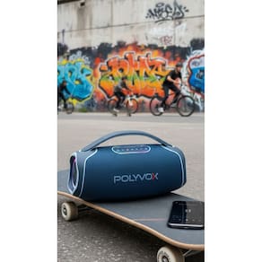 Com o app exclusivo Polyvox, você controla graves, agudos, equalização e microfone direto do celular. O controle remoto da experiência sonora está literalmente na sua mão.