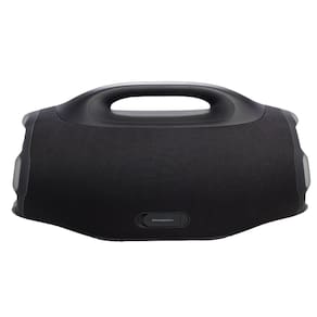 O novíssimo JBL Boombox 4 é maior, mais arrojado e melhor do que nunca, com o potente som JBL Pro que permanece alto e claro, com graves profundos e estrondosos. O AI Sound Boost analisa nossa música em tempo real e ajusta o som para nos dar mais potência com menos distorção, mesmo quando aumentamos o volume. Ele vem com dois woofers maiores, dois tweeters e três radiadores passivos, para que cada faixa tenha mais força e soe mais limpa. Quando quisermos ajustar a vibração, basta alternar entre as configurações de reforço de graves profundos ou vibrantes para combinar com nosso humor. Demos ao design clássico do Boombox uma nova atualização, ele é maior, mas mais leve, para que possamos levá-lo aonde quer que a festa vá: à praia, ao quarteirão ou ao quintal. É IP68 à prova d'água e poeira, portanto, o clima nunca é um obstáculo. E, com até 34 horas de reprodução (graças ao Playtime Boost), estamos prontos para longas jornadas. Com o JBL Boombox 4, levamos o clima e a energia para onde quer que vamos.