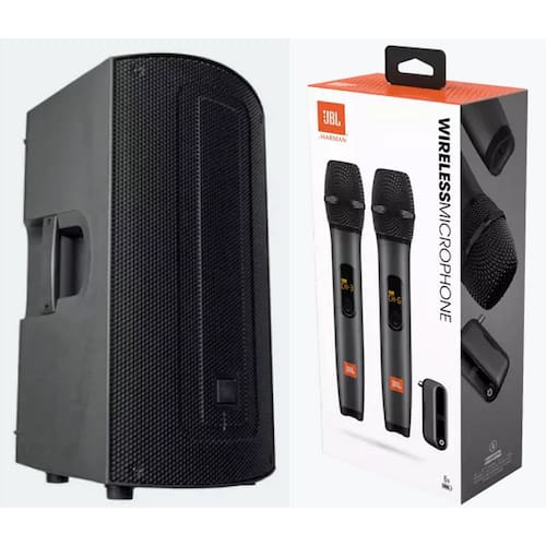 Kit composto de 1pç Caixa de Som JBL Max 15 Ativa Bluetooth 110/220V + 2 Microfones JBL MICBR2 de mão sem fio..