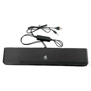 Potência: 6W RMS Frequência: 60Hz - 20kHz Sensibilidade: 70dB Impedância: 4ohms Alimentação: 5Vdc via porta USB Dimensões: 40,3 x 9,5 x 11,5cm C x L x A