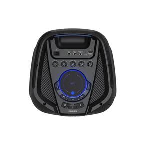 Esta poderosa Caixa de Som Bluetooth Philips Party Speaker TAX4209, Potência 1300W. O som potente, o reforço de graves DBB e os dez modos de luz RGB criam a atmosfera perfeita para festas. Você pode conectar uma guitarra e um microfone à caixa de som. Além disso, a alça da caixa de som facilita sua movimentação.