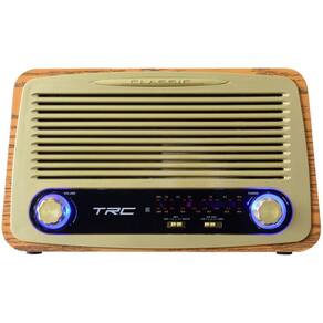 Caixa De Som Portátil Retro Bluetooth 35W Trc212 Marca: trc Modelo: trc212 Vintage e elegante, a caixa de som tem estilo retrô e lembra um jukebox com iluminação led. É portátil, funciona com bateria recarregável ou pilhas, tem conexão usb, sd, bluetooth, mp3, entrada auxiliar, controle remoto e capta as frequências am/fm e sw Características do produto: - caixa de som portátil retrô - 2 auto-falantes de 3 - dupla voltagem ac 110v/220v (chaveada) - potência: 35w rms - 4 faixas de rádio: fm/am/sw1-2 - entrada usb leitor mp3 - entrada cartão sd leitor mp3 - rádio estéreo - entrada dc 6v - bateria interna recarregável - função bluetooth - bateria interna: 6v - carregamento de bateria de 3-4 horas - autonomia da bateria até 100min