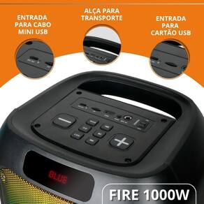 Se você gosta de música, vai querer ouvir sua playlist na Caixa de Som Portátil FIRE 1000W. Ela possui um sistema de som de altíssima qualidade com 1000W de potência RMS, fácil de transportar e possui bateria recarregável de longa duração. Ouça suas músicas através de uma conexão Bluetooth, USB ou por uma entrada AUX.