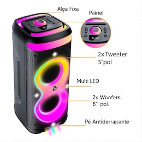A iluminação MultiLED cria um show visual à parte, enquanto suas conexões Bluetooth, USB e função TWS permitem emparelhar com outros dispositivos e caixas sem fio.