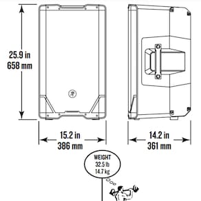 O design do gabinete com ângulo duplo permite o uso como monitor de chão de alto desempenho A montagem em poste de ângulo duplo oferece cobertura ideal e reflexos mínimos na maioria dos locais; A inclinação de 7 graus para baixo é perfeita para quando os alto-falantes estão em palcos elevados Flypoints M10 para instalação profissional Peso: 28,2 lb/12,8 kg Dimensões: 23,0 x 15,1 x 12,9 pol./584 x 384 x 328 mm