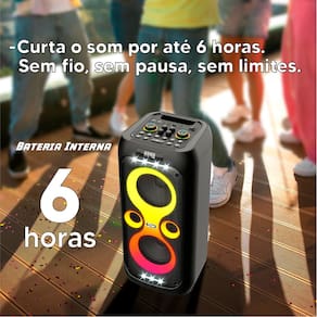 Seu visual moderno com LEDs coloridos cria o clima ideal, enquanto o formato portátil garante praticidade para levar aonde quiser.
