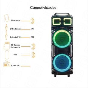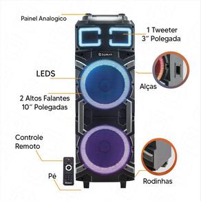 A caixa de som tem uma potência de 1400W RMS, o que a torna capaz de produzir som alto e claro de altíssima qualidade, com função X-bass trazendo mais potência para suas músicas, 6 bandas de equalização, contendo 2 alto-falantes de 10 polegadas e um Tweeter de 3” polegadas.