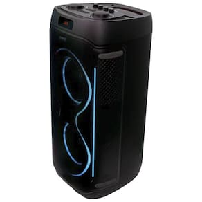 A V6 Party conta com um display digital que facilita a visualização das configurações. Sua função rádio FM permite sintonizar suas estações favoritas e diversificar a playlist. Além disso, a iluminação RGB sincroniza com a música, criando uma atmosfera animada e dinâmica para sua festa. Com duplo alto-falante de 6,5 polegadas, ela oferece um som equilibrado e de alta performance. Compacta e portátil, a V6 Party é fácil de transportar para qualquer evento. Ela também suporta mídias de até 128GB, com formatos de áudio MP3, proporcionando uma experiência personalizada. A impedância de 3,6O e a faixa de frequência de 50Hz a 20kHz garantem som que se adapta a qualquer ocasião.
