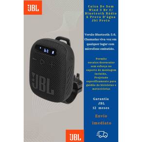 Caixa De Som Wind 3 Br C/ Bluetooth Rádio A Prova D'água JBL Preto