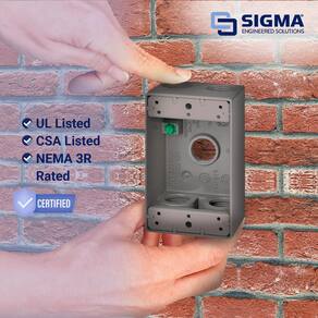 SIGMA ENGINEERED SOLUTIONS 14253-5 Caixa de tomada elétrica de metal, à prova de intempéries, plugue de montagem fácil e protetor de receptáculo, cinza, (5) furos de 3/4 polegadas, 1 caixa de gangue