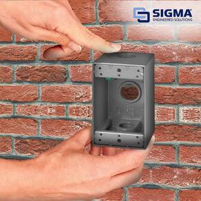 SIGMA ENGINEERED SOLUTIONS 14256 Caixa de tomada elétrica de metal, à prova de intempéries, plugue de montagem fácil e protetor de receptáculo, cinza, (3) furos de 9,5 cm, caixa profunda de 1 grupo