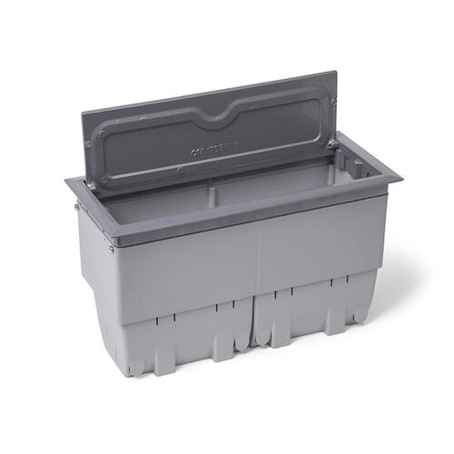 Características do produto:capacidade: 8 blocos elétricos ou dados.Abertura: mecânica.Passa cabos tipo rampa com abertura para cabos até 10mm de diâmetro.Saída para os cabos em qualquer posição linear à caixa. Cores standard: cinza configurações standard: 8 blocos: kit com 3 tomadas elétricas 20a, 3 blocos para conectores rj45 keystone ou systimax, 2 blocos cegos.Não possui montagem elétrica. Dimensionais externos: 8 blocos: 265 x 116 x 115mm s/ fundo .